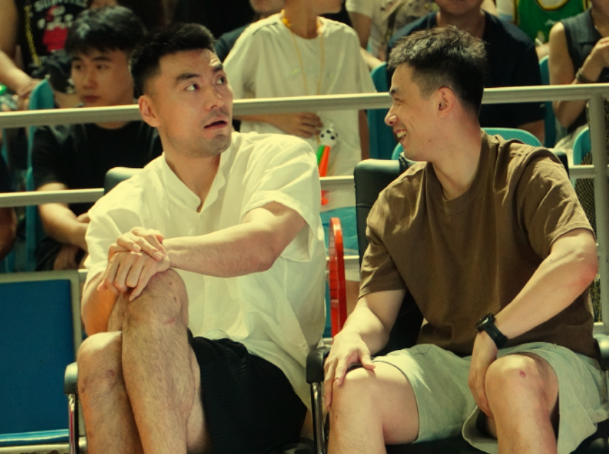 而二老李晓旭和赵继伟虽然没有进入辽篮的12人大名单,但是他俩也没有闲着,一边看比赛一边聊着天,大概是在说场上比赛的队友们的技术特点。